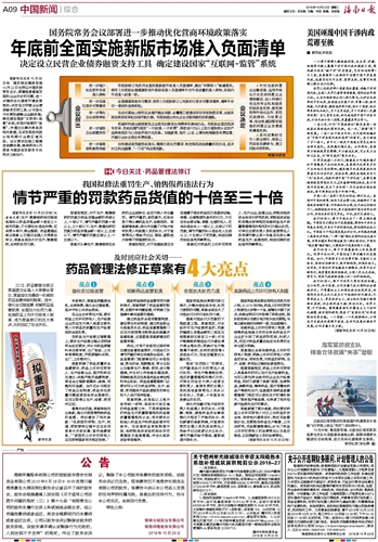 年底前全面实施新版市场准入负面清单