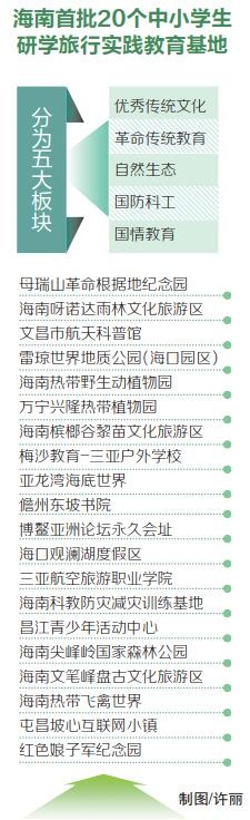 日前,省教育厅公布了海南省第一批20个省级中小学生研学旅行实践教育基地名单,无疑为学生们感受“行走的课堂”提供了有益指南。