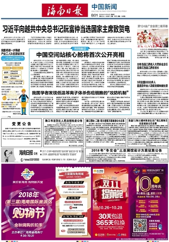 海南日报 中国新闻 009 2018-10-241 2018年10月24日 星期三
