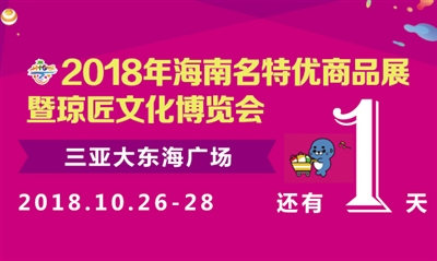 2018年海南名特优商品展暨琼匠文化博览会还有1天
