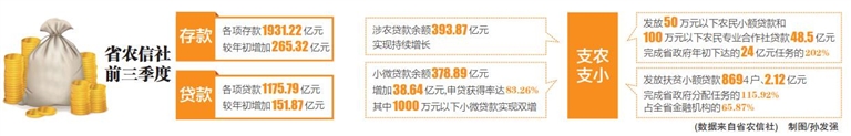 前三季度,省农信社经营质效稳中有升,不良贷款清收11.03亿元,不良贷款核销3.45亿元,计提拨备29.25亿元,成本收入比下降2.98个百分点,缴税9.97亿元。