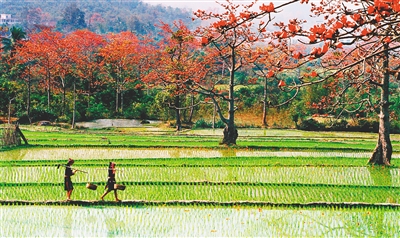 作为昌江独具特色的生态景观,昌江木棉红景观大多集中在七叉镇和叉河镇,如昌化江畔木棉景观、梯田木棉景观、火车铁路木棉景观等10多个观景片区。因生长地域不同,在视觉上形成不同的景观风格。