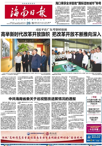 海南日报 头版 001 2018-10-261 2018年10月26日 星期五