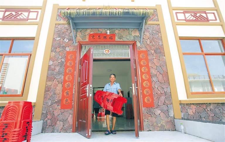 10月24日,琼中黎族苗族自治县红毛镇番响村南美村民小组,乔迁新居的村民王啟法正忙着收拾新屋。琼中将南美村民小组列入生态旅游脱贫工程进行整村开发,59户村民住上了小洋楼,一楼为村民居住,二楼可作为民宿经营。