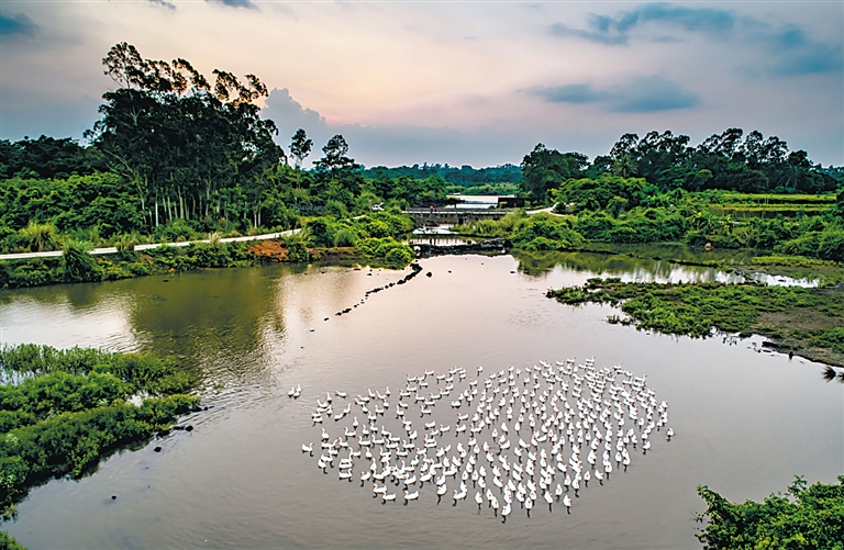 湿地与森林,共同构成一个循环,调节海口城市雨旱季的水分资源不均。淫雨霏霏之时,湿地默默地将过多的雨水深情吸纳;炎炎烈日之下,湿地给干裂的土地以滋润。湿地纳水、吐水,做足了水文章。