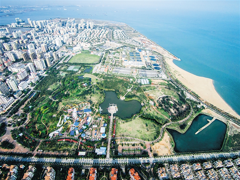 椰林、绿地、花园、海岸——植被茂盛,风景秀丽的万绿园紧挨着龙珠湾,一直是海口人气最旺的市民公园,被誉为“城市客厅”。