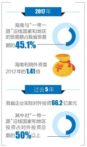 省商务厅副厅长荣延松介绍,海南将通过投资、贸易、人力资源合作等多种方式,积极深化与“一带一路”沿线国家和地区的合作,发展外向型经济。开展对外投资重大项目的建设,推动我省企业在中东、中亚等地的油田、天然气开采运输等重大对外投资项目顺利实施;通过对外贸易带动产能合作,推动一汽海马汽车有限公司与“一带一路”沿线国家和地区的企业签订战略合作协议,做强我省实体企业,提升我省企业国际化水平;依托洋浦油气和石化产业基础,做大我省与“一带一路”沿线国家和地区油品贸易规模,使我省洋浦国际能源交易中心成为面向东南亚的油品、石化产业基地;支持“一带一路”国际产能合作项目,鼓励我省企业赴“一带一路”沿线国家和地区开展国际产能合作,对企业予以必要的融资支持。