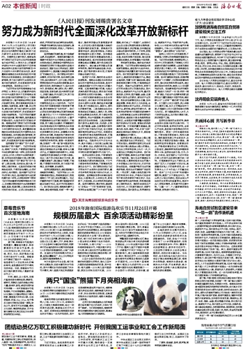 海南日报 本省新闻时政 002 2018-10-301 2018年10月30日 星期二