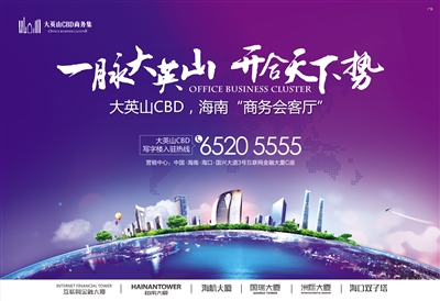 从大英山老机场到国际旅游岛CBD,再到总部经济聚集区。大英山CBD正全力打造总部经济高地,产业呈聚集之势。未来,这里将有13万人居住,10万人工作就业,大英山CBD已日益成为海口乃至海南的一张靓丽名片。