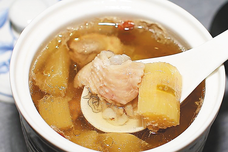 清甜多汁的甘蔗,也是煲汤的好食材。在海南,有的人喜欢拿甘蔗来烤,还喜欢用来煮汤。甘蔗去皮后,切成小段,配上枸杞、板栗、马蹄等“煲汤伴侣”,加入鲜美的鸡肉或排骨共同慢炖,随着甘蔗汁慢慢渗透至汤汁中,清甜浓郁的口味引人回味。