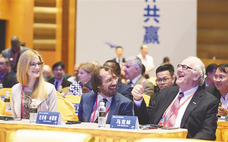 10月30日,参加2018“一带一路”媒体合作论坛的嘉宾兴致勃勃地交流。 本报记者 王凯 摄