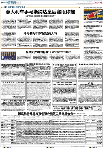 海南日报 体育新闻综合 017 2018-10-311 2018年10月31日 星期三