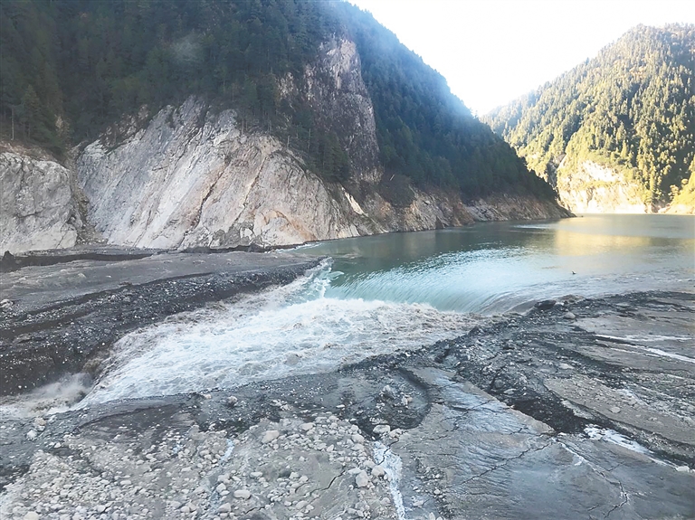 经直升机现场查看,堰塞体与10月17日形成的堰塞体位置相同,目测规模相近。