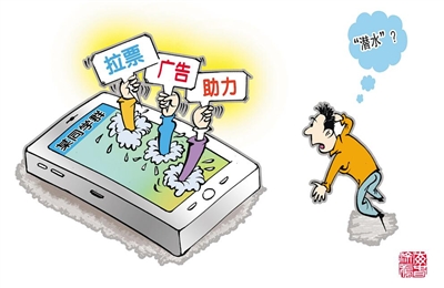 众多成员在群中“潜水”的同时,一些同学群出现了功能异化。记者调查发现,不少群成了“拉票群”“广告群”“助力群”,让人不堪其扰。