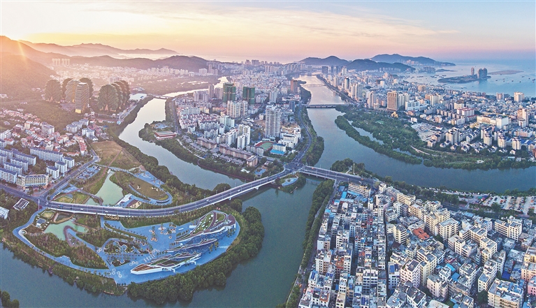 三亚河畔,碧水潺潺、白鹭翩飞,山、水、城相融,生态风光惹人沉醉。步行于三亚河东路上,感受着宜人美景,三亚市民潘后凤充满感慨:“近年来三亚保护环境新举措不断,生态越来越好,在这工作、生活是种幸福。”