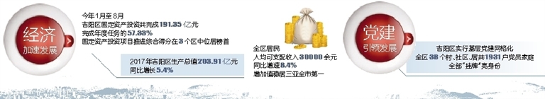 “党建强、发展强。吉阳区围绕发展抓党建,努力把党建优势转化为发展优势,把党建成果转化为发展成果,为经济社会发展提供强有力的思想、政治和组织保证。”吉阳区区委书记陈跃表示。