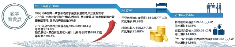 旅游版本不断升级,从1996年亚龙湾凯莱酒店启动三亚旅游1.0版本后,鹿城旅游不断迈上新台阶,今年三亚·亚特兰蒂斯酒店正式迎客,旅游升级至3.0版本,集吃住行游购娱于一体的全要素旅游综合体成趋势,海昌梦幻不夜城等优质项目加紧施工,“大旅游”发展格局助力旅游迎来新动能……