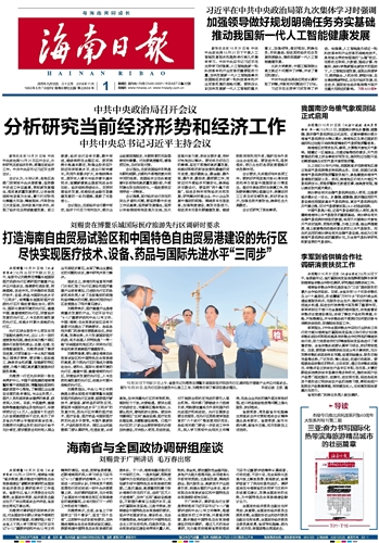 | 打造海南自由贸易试验区和中国特色自由贸易港建设的先行区 尽快实现医疗技术、设备、药品与国际先进水平“三同步” | |