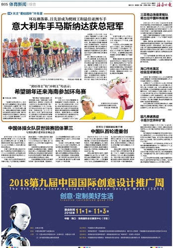 | 海南日报 体育新闻综合 013 2018-11-011 2018年11月01日 星期四 |