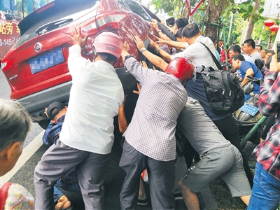 “大家过来帮帮忙!把阿婆从车底下抬出来。”孙勇话音未落,一旁路过的市民纷纷上前帮忙。