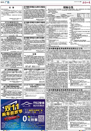 海南日报 广告 013 2018-11-071 2018年11月07日 星期三