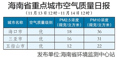 海南省重点城市空气质量日报