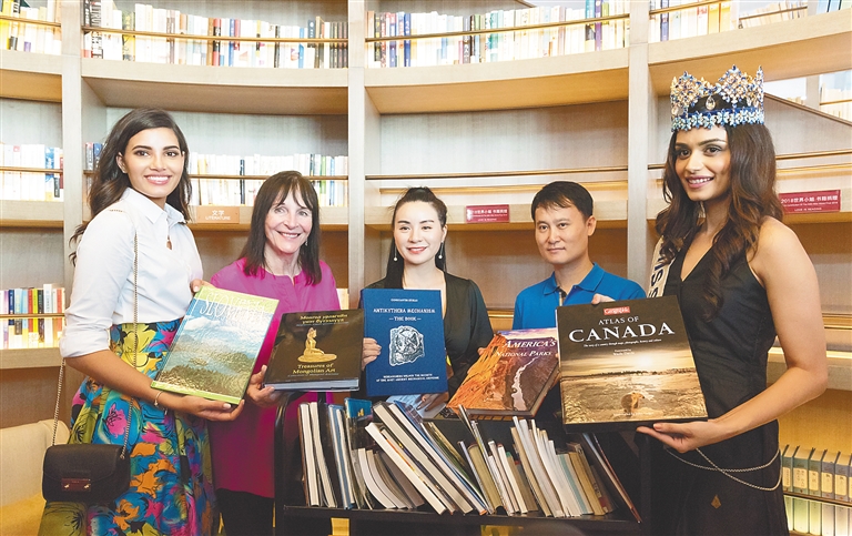 11月21日下午,世界小姐机构主席莫莉夫人携同参加第68届世界小姐全球总决赛的各国佳丽,在三亚·爱上山读书馆举行书籍捐赠公益活动,向读书馆捐赠125本来自世界各地的书籍,每一本书籍都是参赛佳丽随身携带,漂洋过海而来,甚至有她们自己的读书笔记。