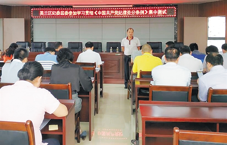 海口市美兰区纪委监委开展学习《条例》测试。(美兰区纪委监委供图)