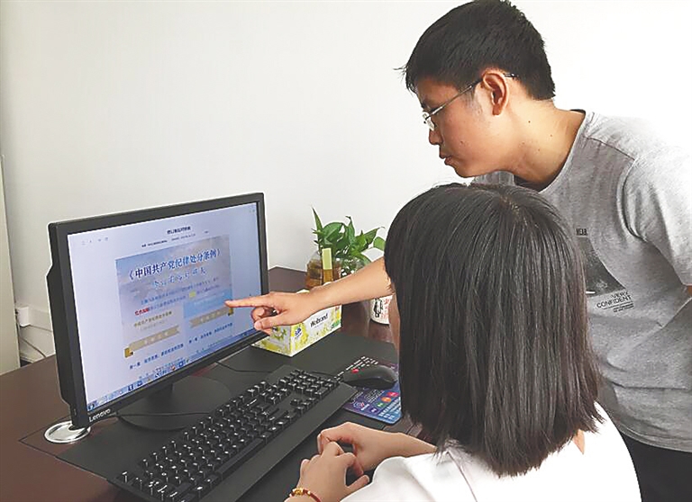 海口市美兰区纪检干部在线学习《条例》。(美兰区纪委监委供图)