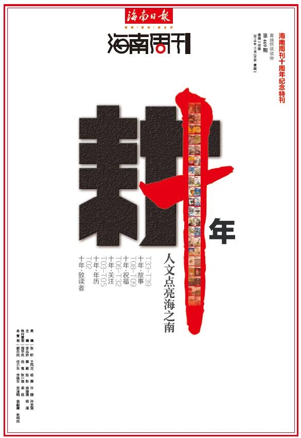 2008年11月3日,由海南日报报业集团创办的高端阅读读物《海南周刊》以“报中报”的形式出现在海南报业市场上,甫经面世,便以其清新的构图及卓尔不群的报道风格赢得读者的喜爱。十年间,她用469期、1800多万文字,把海南的故事和岁月装订成册,践行新闻性、思想性、人文性的办刊理念。十年后,她依然步履铿锵,做到了“有坚持、有改变、有梦想”。