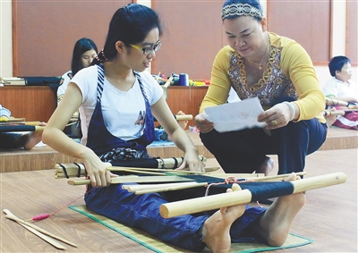 “我们在2013年启动了黎锦进校园实践课程。”五指山市文化馆负责人介绍说,传承是最长久的保护方式,而要想让孩子们掌握到最正宗的黎锦纺织技艺,传承人这些“武林高手”就是最好的老师。