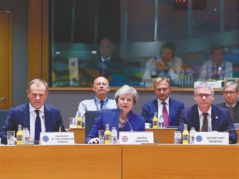 英国与欧盟谈判过程中,特雷莎·梅在国内持续遭遇阻力,尤其她所属执政党保守党内的“疑欧派”人士,指认她向欧盟妥协太多。保守党的政治盟友、北爱尔兰民主统一党认定英国“脱欧”后将与欧盟“捆绑太紧”,说将在议会否决“脱欧”协议。