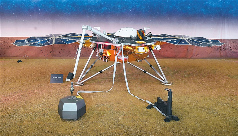 “洞察”号无人探测器传回的火星首张照片。 新华社/美联