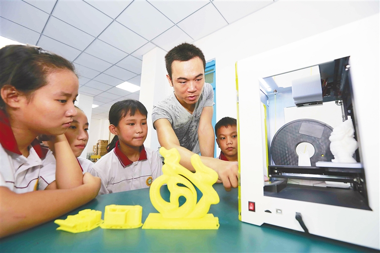 白马井镇距儋州市区50多公里,全镇14所小学分散在各村里。2011年起,各所学校把现代信息技术引进学校,实现“宽带网络校校通”,应用“智慧课堂”,建成全自动智能录播室、电子书包教室、交互式电子白板、3D打印课堂等。现在,这14所学校的学生能像城里孩子一样享受优质教育资源。