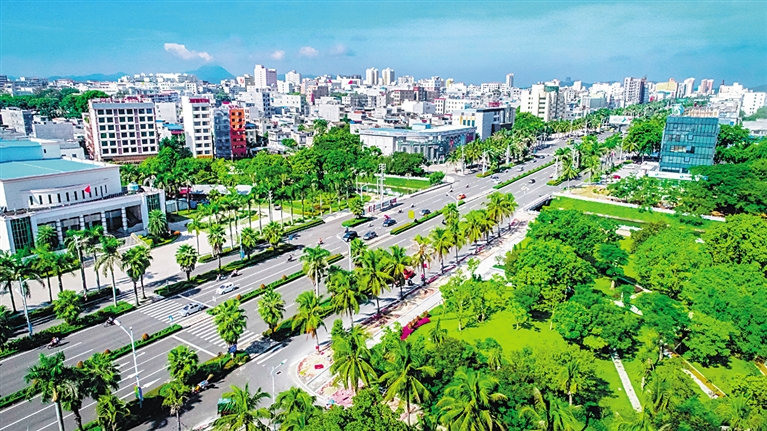 从海南西线高速洋浦互通下高速,再经由北部湾大道前往那大镇,远远望去,隐约可见城北新区拔地而起的高楼大厦鳞次栉比;