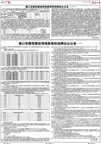 海口市国有建设用地使用权挂牌出让公告