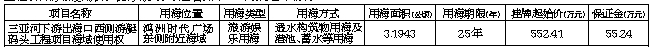 根据《中华人民共和国海域使用管理法》、《海南省实施〈中华人民共和国海域使用管理法〉办法》和《海南省海域使用权审批出让管理办法》及有关法律法规规定,经三亚市人民政府批准,三亚市海洋与渔业局决定以挂牌方式公开出让三亚河下游出海口西侧游艇码头工程项目海域使用权。现将有关事项公告如下:一、宗海基本情况