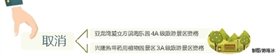 根据文化和旅游部部署,2018年9月,全省对A级旅游景区开展了集中检查。经查,亚龙湾爱立方滨海乐园取消门票并对社会免费开放后,原有管理公司人员缩减,景区安全管理力度削弱,消防设施管理、安全标识设置、安全巡逻工作均不符合要求,游客服务设施因全部对外租赁经营也导致管理不善。此外,游客中心服务功能丧失,游客休憩设施不足,标识系统功能、旅游接待和游览观光体验服务基本丧失。根据《旅游景区质量等级的划分与评定》《旅游景区质量等级管理办法》,该景区已达不到A级旅游景区标准,取消其4A级旅游景区资格。