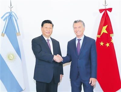 马克里表示,热烈欢迎习近平主席访问阿根廷,感谢中国长期以来给予的帮助和支持。在中国改革开放40周年之际,阿根廷祝贺中国经济社会发展和减贫等方面取得的重大成就。中国已经成为世界经济主要引擎,中国的发展和中国梦的实现对阿根廷和拉美的发展影响重大,对世界和平、稳定和繁荣意义深远。阿方坚定致力于深化同中国的全面战略伙伴关系,加强“一带一路”框架内合作。近年来,阿中互信增强,各领域交往频繁,两国合作进入互利共赢新阶段。阿方成功参加了中国首届国际进口博览会,愿进一步开拓中国市场。阿方希望以这次双方签署未来5年共同行动计划为契机,拓展农业、金融、航空、基础设施建设等合作,增进在旅游、体育等人文领域交流。阿方欢迎中方企业扩大对阿根廷投资。