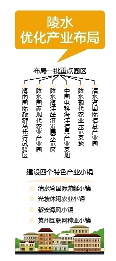 从旅游到农业,从互联网信息产业到海洋产业,陵水的产业布局处处呈现新气象。陵水县长李锋说,近几年来,陵水重点发展旅游、互联网、海洋等“六大产业”,布局建设了一批重点园区、特色产业小镇和产业项目。
