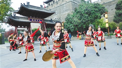 一群身着少数民族服装的黎族阿哥阿妹,跳起欢快的黎族舞蹈,喊出“‘山海黎乡,纯美昌江’欢迎您”的口号……日前,西安、广州的各个城市地标出现了一群特别的“快闪族”,来自昌江黎族自治县歌舞演员,用独具特色的黎族歌舞表演“打卡”城市地标,引发关注。