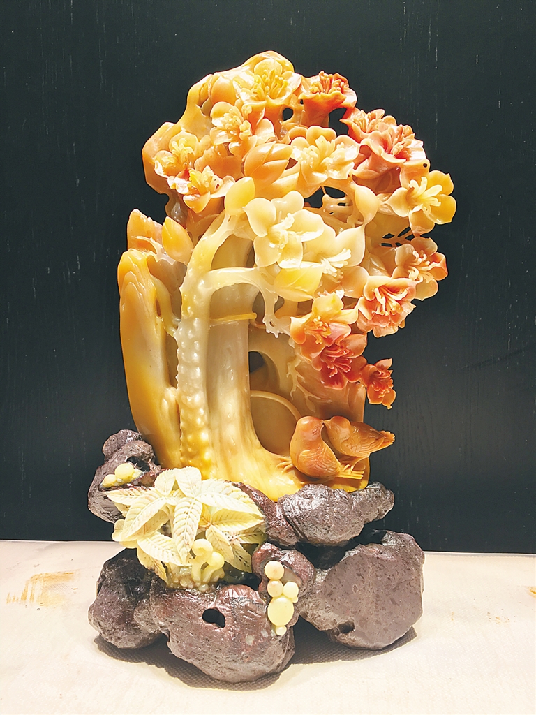 和花梨、沉香等昌江“老牌”珍宝相比,昌江玉绝对是后起之秀。据介绍,昌江玉是地方的命名,属于黄蜡石类。按传统分类法,硬度在5度称“玉”,5度以下称“石”。昌江玉摩氏硬度在6.5度-7度之间,比和田玉高,与翡翠相当。