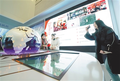 12月5日,观众在新华社主办的 “新华社的经典报道”展台参观。