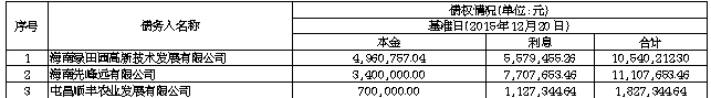 2015年12月20日之后产生的利息,以及与债权相关的从权利亦在本次处置范围内。上述债权金额由我司根据相关债权协议约定计算所得,仅供参考,不构成我司对债权最终回收金额的承诺,最终的债权金额以司法裁定为准。债权具体情况及相关情况请投资者登录我司对外网站查询(http://www.gwamcc.com)或与我司有关部门接洽查询。