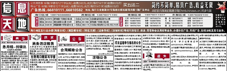 欢迎在海南日报 南国都市报刊登广告