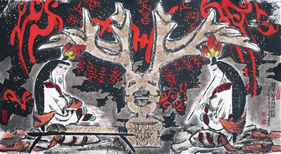 作为国画艺术大家的易至群,以一己之力画出了楚文化特有的热烈、野蛮、怪诞、神秘的生命意味;那雄浑、壮丽、奇诡的楚文化磅礴气势,那恣肆狂放的笔墨,又洋溢着易至群对中国传统文化精神的挚爱。近日,备受关注的“易至群‘新楚风’作品展”在武汉美术馆展出,被评论家称之为“惊彩绝艳新楚风”。