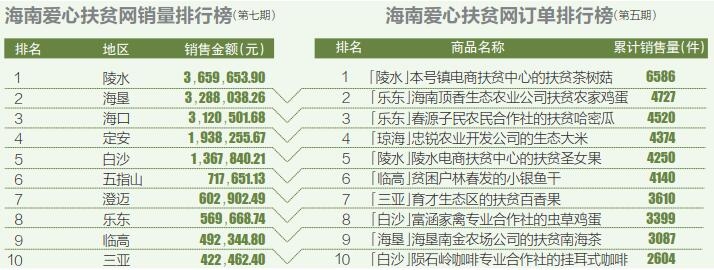 以上排名根据海南爱心扶贫网数据进行统计,统计时间:2018年10月16日至12月9日16时