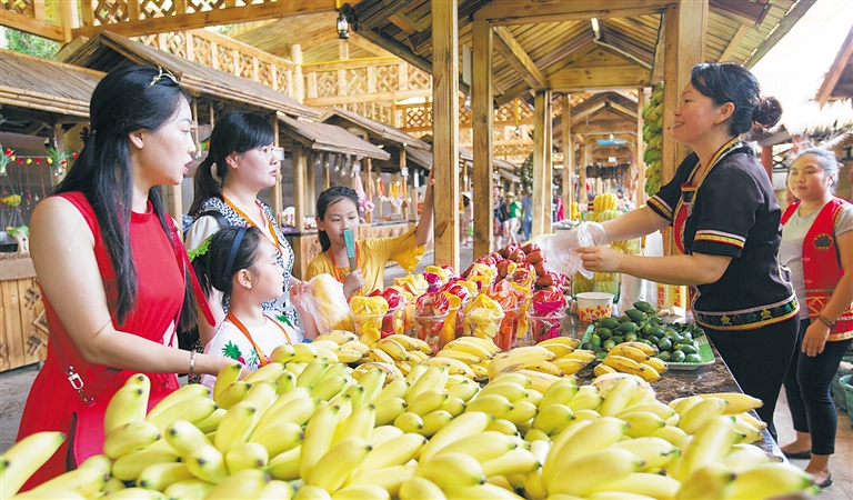“实行景区带村,定点帮扶模式,采取提供就业、设置摊位、物资采购、入股分红、‘企业+农户+旅游’等方式让贫困户分享景区发展带来的收益,做到精准帮扶。”保亭旅游委副主任颜春海介绍称。