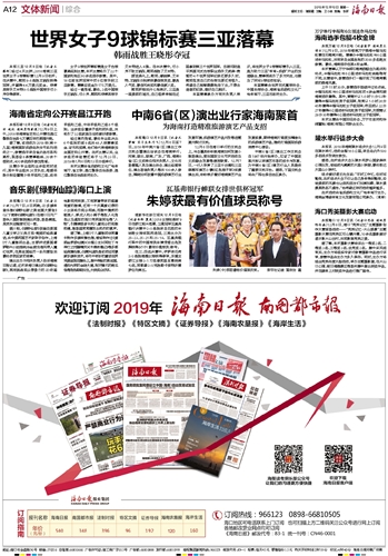 海南日报 文体新闻综合 012 2018-12-101 2018年12月10日 星期一