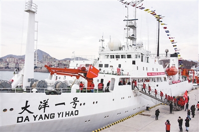 当日,“大洋一号”科考船从位于青岛的自然资源部北海分局科考基地码头起航,将前往印度洋、大西洋执行中国大洋52航次科考任务。新华社发